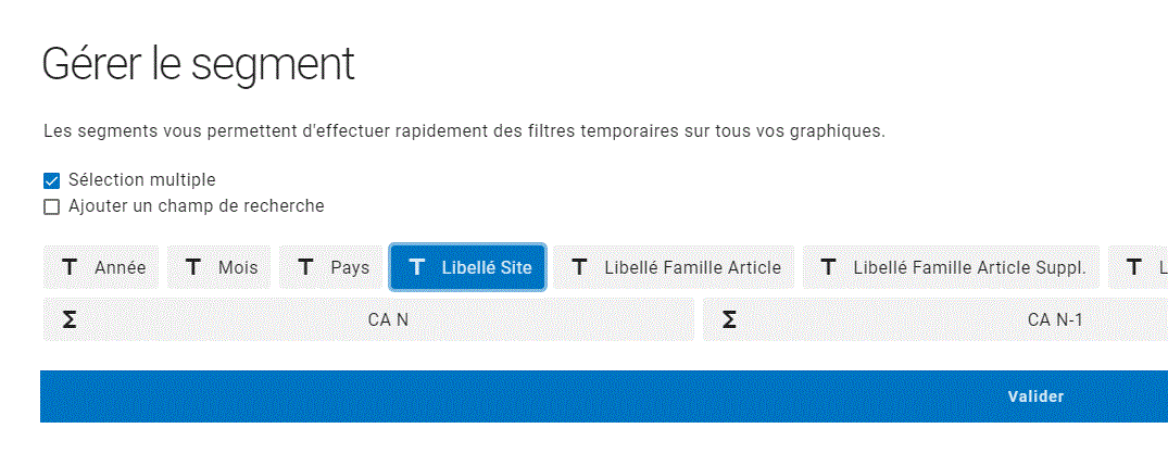 Vous pouvez décider de permettre la sélection multiple lors de l'utilisation du segment et d'ajouter si vous le souhaitez une fonction de recherche. Ces fonctionnalités sont modifiables une fois le segment créé.